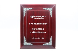 Invitrogen 2003 全国优秀协议代理