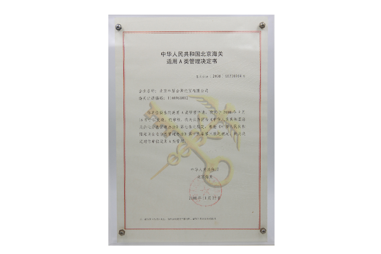 海关适用A类管理决定书