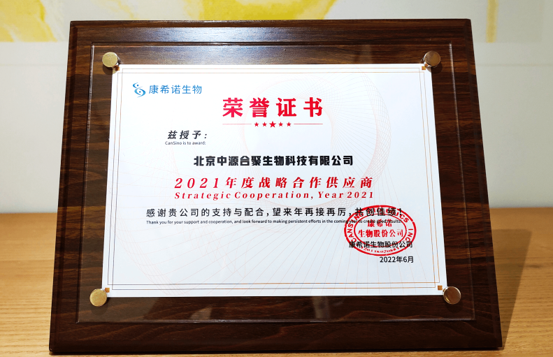 中源合聚生物有限公司获评康希诺生物股份公司2021年度战略合作供应商。2022-08-10 13:36:00.0