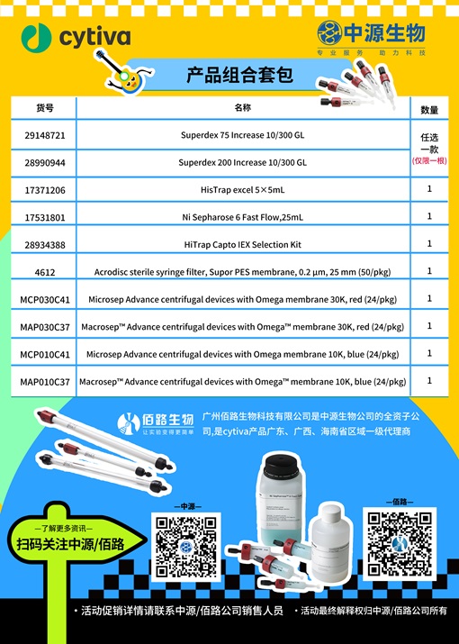 Cytiva优选 滤器+超滤管+His标签亲和层析+离子交换+分子筛的产品组合,促销啦!