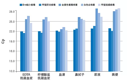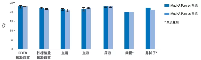图5. MagNA Pure 24提取的核酸经过qPCR,Cp 值相对较低,这表明B体育最新官方-B体育(中国)的核酸产量较高