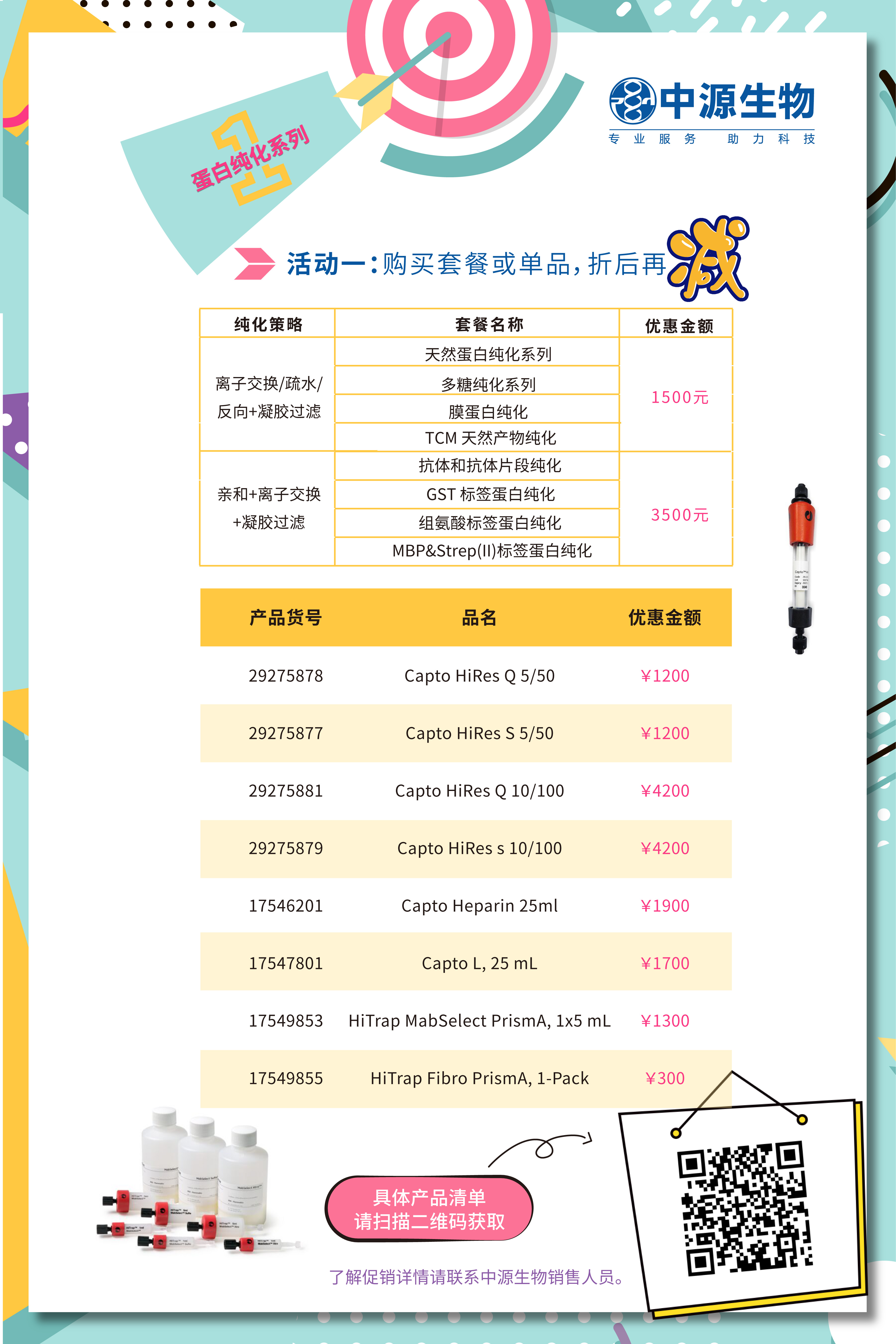 购买指定纯化产品套餐或单品,即可享受价格优惠,部分畅销品买三赠一, 具体如下:
