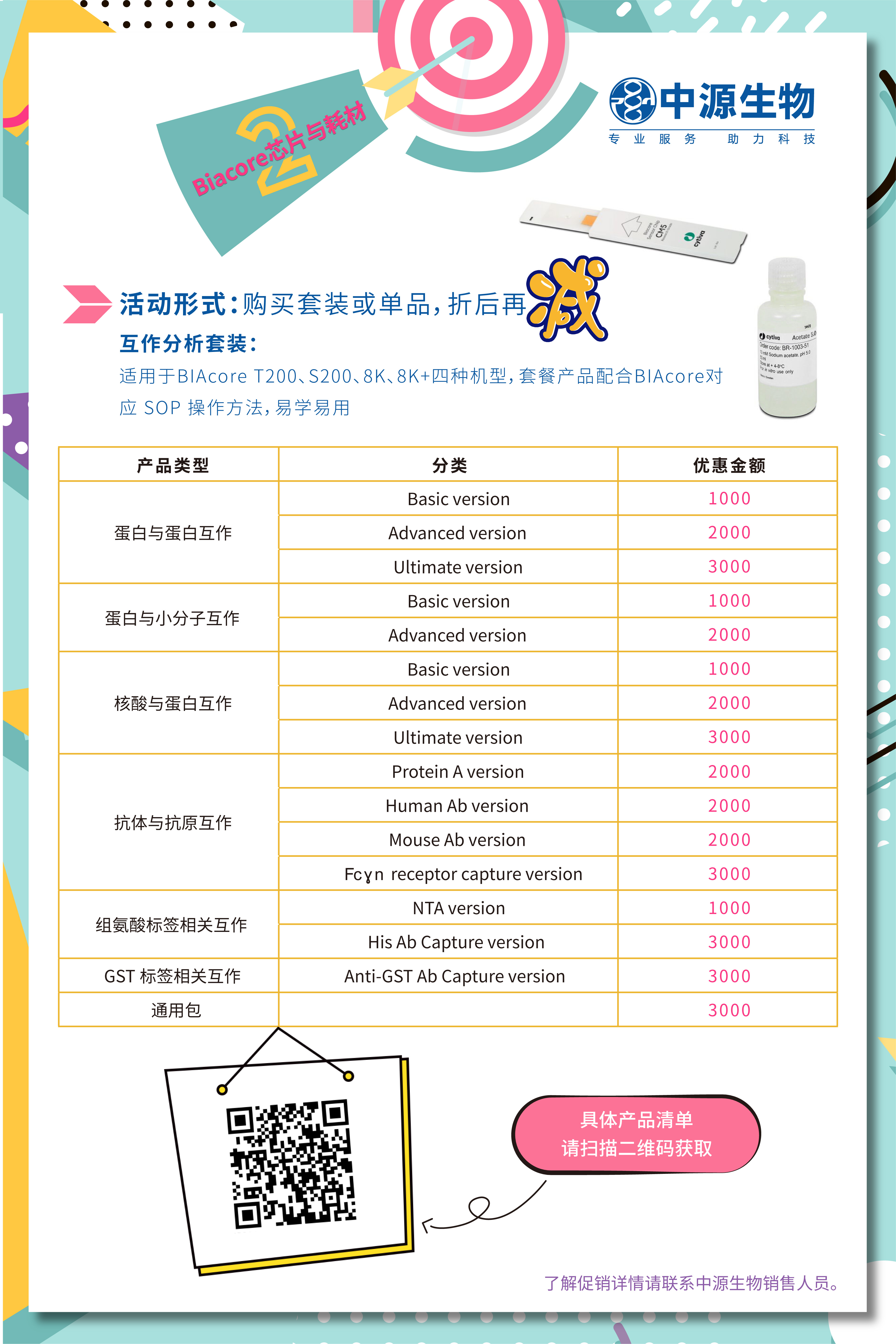 购买Biacore 指定套餐或单品,即可享受价格优惠(套餐产品仅供客户参考,客户可根据实际需要灵活选择,详情可与相关销售人员咨询),具体如下: