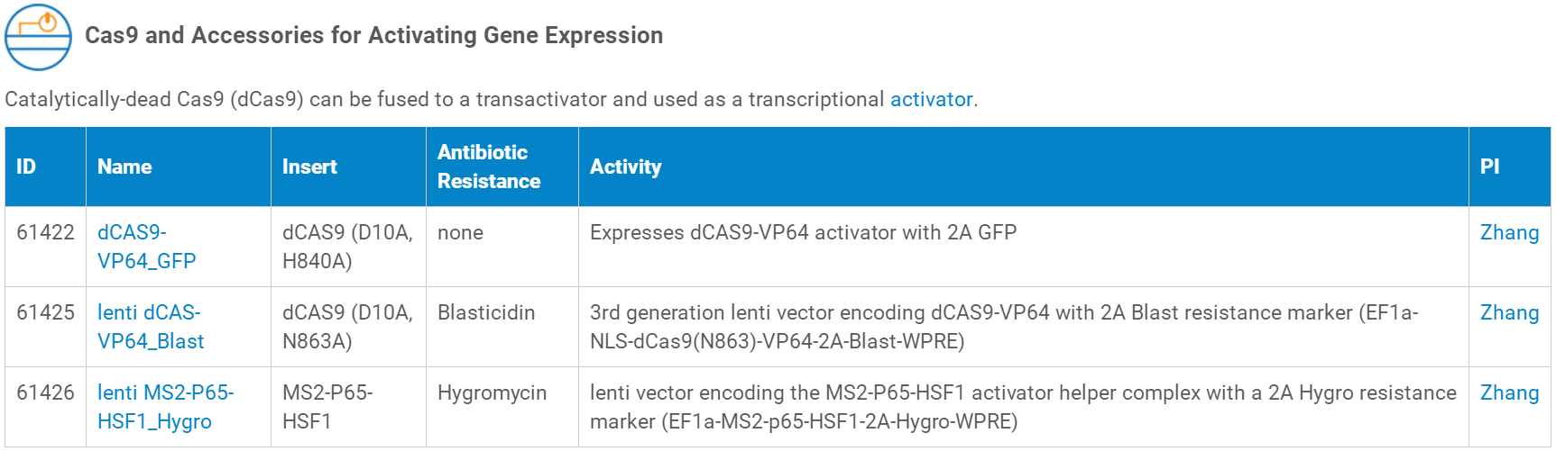 目前Addgene可以提供以下几个方面的包装后慢病毒产品: