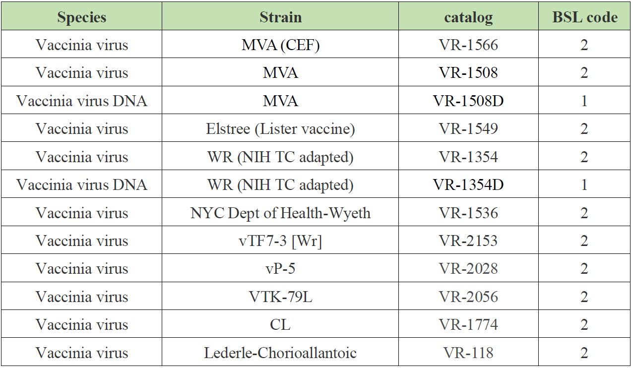 【简讯】ATCC猴痘病毒相关产品