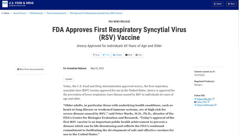 [1]https://www.fda.gov/news-events/press-announcements/fda-approves-first-respiratory-syncytial-virus-rsv-vaccine