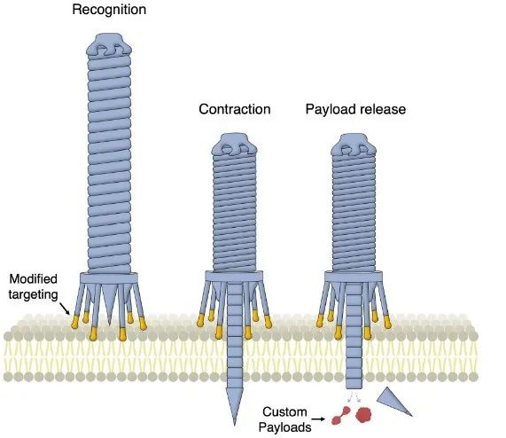 重新设计细菌的胞外可收缩注射系统,将其改造为专门靶向特定人类细胞递送所需蛋白质的装置